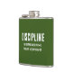 The flask itself is fine. It’s a cheap flask, obviously bought in bulk, however am prepared to overlook that. Given that it is a personalized item, I would have liked to have seen gift boxing instead of the generic packaging. Terrible printing, and/or quality. It’s a cheap, tacky vinyl. It is not cut straight and is also applied in a way that it is overhanging the bottom, causing the glue to catch on items and it will eventually roll and tear, damaging the wrap.