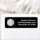 These return address labels feature a cute faux silver disco ball with customisable text for your name and return address on a black background with white text.