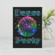 This invitation has a large colourful disco ball and the words Dance Party on the front and a small disco ball on the back with sample party invitation text. Use the customise button to change or delete any text on the back.