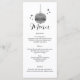 This disco ball dinner menu is perfect for any occasion! Wedding, anniversary, birthday, bridal shower, etc. Customise with a dinner menu for your event.