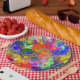 Cool colourful disco balls in an array of colours modern digital pour painting fluid art Birthday party paper plates.