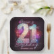 Get ready to turn up the volume and hit the dance floor with this electric 21st birthday design! This party plate features a dazzling, 3D-style mosaic disco ball number "21" that takes center stage, surrounded by floating musical notes and shimmering bokeh lights. The background captures a deep, atmospheric club vibe with neon glowing accents in shades of hot pink, violet, and holographic silver. Personalized with elegant, laser-style script typography for the birthday girl's name and event date. Perfect for a karaoke night, dance club theme, DJ party, or a glamorous girls' night out celebration.