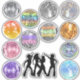 Includes disco ball art images in multiple colours; a silver disco ball, a gold disco ball, a blue disco ball, a rainbow disco ball, an orange disco ball, a pink disco ball, a gold and silver disco ball, a multicolor disco ball, a purple disco ball. In addition, a silhouette of disco party dancers is included.