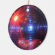 Mirror disco rotating ball with laser lights reflection in blue and red