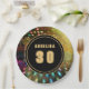 The name and age is customisable for your Guest of honour in the centre of the plate with gold on black in a round circle frame.