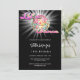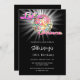 A girly and feminine 18th (or any age) party invitation. A black background colour. Decorated with a colourful disco ball. Text: Let's Dance. Personalise and add a name and party details. The name is written with a hand lettered style script.