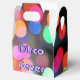 Gable-style favour box with an image of colourful disco lights and the optional phrase “Disco Fever” in ombre purple lettering on both sides. See the entire Disco 70s Favour Box collection in the PARTY FAVORS section.