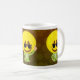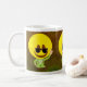 A funny groovy happy 70's iconic face disco dancer grinning yellow dude ceramic hot beverage tea, cocoa, or coffee mug. This is the grooviest most far out cup ever.