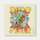 This electrifying graphic is a throwback to the disco era, featuring Shaggy and Scooby-Doo dressed in vibrant 70s disco attire. Shaggy strikes a dance pose with a stylish star on his forehead and a groovy patterned shirt, while Scooby-Doo sits beside him, sporting funky sunglasses and a disco ball necklace. The background bursts with bold colours and retro elements like clouds, stars, and disco lights, all set against a giant "DISCO FEVER" text in a thick, pop-art style font. This artwork encapsulates the fun and energetic spirit of the era, perfect for fans of Scooby-Doo and retro pop culture.