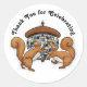 Do you enjoy 70's vibes and great puns? Then this disco dancing "Saturday Nut Fever" thank you sticker is perfect for you and your squirrel loving friends and family! Partying the night away under a shining acorn shaped disco ball, these two squirrels know how to boogie and have a good time! Add this cute sticker to your party favour goodie bags or thank you card envelopes to let your guests know that you're thankful they shared your special occasion with you!