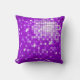 Throw pillow with a fun and funky stylised "disco mirror tile look" printed pattern in shades of purple and white. Can be used as a background for your own text, images and ideas. Please note this is a printed digital art image, it does not shine or contain real mirrors or glitter.