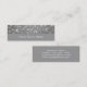 Business card with a glamourous stylised "disco mirror tile look" printed pattern in shades of silver grey, and white text on a grey background.. Can be used as a background for your own text, images and ideas. Please note this is a printed digital art image, it does not shine or contain real mirrors or glitter.