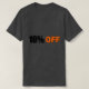 This navy blue T-shirt prominently features the text "10% OFF" in a stylish design. The number "10%" is displayed in black, while the word "OFF" is highlighted in orange. Perfect for promotional events or casual wear, this T-shirt is a great way to showcase a special discount.