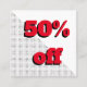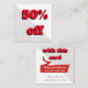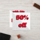 A square card with a bold design, 50% off or whatever number works for you, all text is completely editable for your own info.The half of the card design suits a 50% off sale but ultimately works with anything.