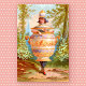 Hello Sugar, a charming and quirky anthropomorphic illustration features woman encased in a sugar bowl surrounded by a forest. The enhanced Victorian trade card displays the stippled texture typical of coloured printing of this era. It’s perfect for kitchen and dining room decor, notebooks, cards and food related products.