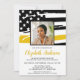 Thin Gold Line Dispatcher Retirement Invitations. Celebrate years of dedicated service and invite friends and family to your police dispatcher retirement party with this Thin Gold Line Flag Dispatcher Retirement Invitation. - USA American flag design in Dispatcher Flag colours, modern black and gold design. This dispatcher retirement invitation is perfect for all police dispatcher or fire dispatcher, 911 dispatchers and emergency 911 operator telecommunications . See our collection for matching dispatcher retirement gifts,party favours, and supplies. COPYRIGHT © 2021 Judy Burrows, Black Dog Art - All Rights Reserved. Dispatcher Retirement Custom Photo Thin Gold Line Invitation