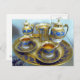 A gold and blue tray set for coffee with matching ornate gold and blue cups & saucers, coffee & milk jugs & accessories