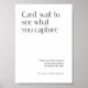 My thoughts on this product was excellent. Well printed in a gloss finishing and just the size l ordered. It arrived in good condition and am overall satisfied with the product. The printing turned out great. I was quite surprised with the finishing touch to the poster. The semi gloss was just right and a perfect size to display at the wedding.