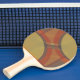 Dissolution ping pong paddle. Dissolution is an abstract design created by Vexenwraith and consists of red, orange, olive and grey circles and rectangles.