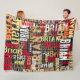 Crafted with meticulous attention to detail, this blanket exudes an artistic flair, drawing inspiration from the realms of modern aged fonts and distressed abstract typography. The amalgamation of red and yellow hues adds a pop of colour, elevating the overall aesthetic and making it a standout accessory for any space.