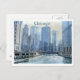 Vintage inspired postcard of the Chicago River in Downtown Chicago Illinois.
