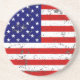 Show off your red, white and blue patriotic spirit with the distressed American flag sandstone coaster design.. Protect any surface with this unique stars and stripes, sandstone gift.