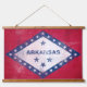 Wood topped wall tapestry features distressed artistic version of Arkansas' state flag