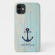 Distressed Beach Wood Nautical Anchor Personalised Case-Mate iPhone Case