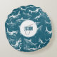 Distressed Blue Shark Pattern Monogram Round Cushion