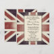 Beautiful distressed British Flag design. A great design for the wedding invites. Put the bride and grooms first names on front making it less formal and on the other side the regular or usual wedding information. This invitation includes an area to add the name and location of the reception. You can easily change any text you like. If you need any help or would like something different please message me. I am available for requests.