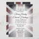Beautiful distressed British Flag design. A great design for the wedding invites. Put the bride and grooms first names on front making it less formal and on the other side the regular or usual wedding information. This invitation includes an area to add the name and location of the reception. You can easily change any text you like. If you need any help or would like something different please message me. I am available for requests.