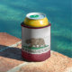 Show your state pride with this koozie that features a distressed version of California's state flag. Dark red border added