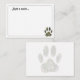 A camo dog paw print cartoon style with distressed effect applied to image. Blank note cards .