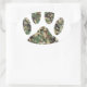 A camo dog paw print cartoon style with distressed effect applied to image.