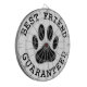 A black dog paw print with text: Best Friend. Guaranteed. Custom dartboards.