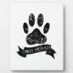 Distressed dog paw print with black ribbon. Man's best friend. Black and white image.
