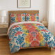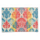 A richly layered damask pattern featuring ornate floral motifs in red, blue, and light blue, set against a sun-washed background of cream, yellow, and blush pink. The symmetrical design evokes vintage wallpaper and ceremonial textiles, while the distressed texture adds depth, warmth, and a sense of faded grandeur. This piece blends mid-century elegance with bohemian nostalgia emotional resonance and timeless charm.