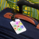 I was happy with the acrylic tag but it came with a thin leather strap to attach the tag to luggage (like a cat collar). I replaced the strap with a metal ring off of a key ring as the leather strap would come undone or break easily as luggage is sometimes handled without much care by airlines. Printing is great. Colours and positioning of the design I put on the tag were perfect. Very pleased.