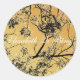 Distressed Gold Oriental Blossoms Classic Round Sticker