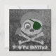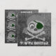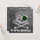 Custom two-sided invitation cards. Front has customisable "You're Invited". Back has invitation information--enter your event title, date, time, location, and additional info or personal message. Grey skull and crossbones with dark green eyepatch and grey bandanna. Eyeball in left eye socket. Design is distressed.