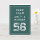 Distressed keep calm typography 56th Birthday card. Fun Keep Calm and Carry On quote for 56 year old. Make your own age specific spoof with custom age number. Cool greeting card idea for men or women. Rustic vintage typography template. Custom colour background. Personalise with message inside.