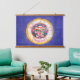 Wood topped wall tapestry features an artistic, distressed grunge version of the Minnesota state flag.