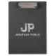 Distressed Monogram Initial Text Template Modern Elegant Black Gray Leather Look Clipboard.