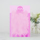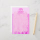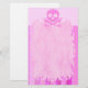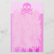 Distressed style two-toned pink skull and crossbones. Sharp fangs. Simple skull art design for Halloween or any time. Blank stationery paper with a stylised flame border.