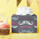A fun moustache print pattern in a lovely shades of berry,violet, and powder blue.
