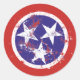 The emblem in the middle of The Great State Flag of Tennessee and its three stars on a blue circle made in a retro, vintage, used and distressed style.