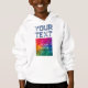 Distressed Text Front Design Add Image Logo Here Template Clothing Apparel Pullover Kids Personalised Kids Boys White Hooded Sweatshirt Pullover.