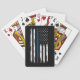 These playing cards feature a distressed thin blue line police flag and black background. Give this deck of cards to your favourite police officer of as a gift for a police retirement celebration or police academy graduation party.