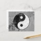 Heavily distressed yin yang symbol postcard in black, white and grey.