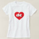 This t-shirt features a vibrant red heart containing the bold, white, rounded lower case letters dc, a playful abbreviation for the District of Columbia.